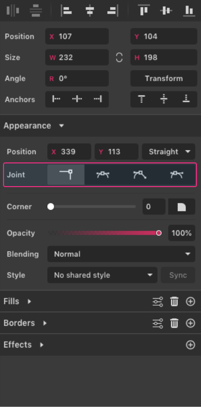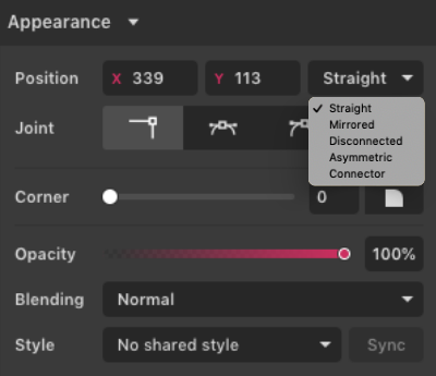- Double-clicking on a Straight anchor point will convert it to an Asymmetric joint.