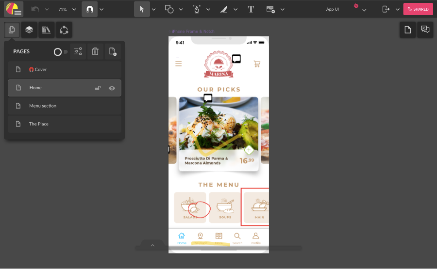 The Pages panel lists all the pages in the document. You can add, rename, delete and rearrange pages. By default, there is only one page. If you want to see all the pages at the same time, you can switch to the Multipage mode by clicking the toggle button in the Pages panel.