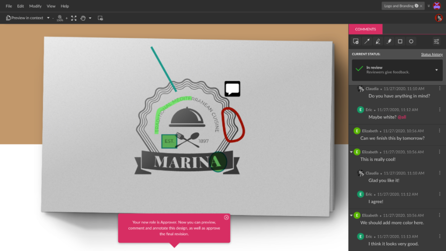 Besides being able to resolve, edit or delete their own comments, Approvers can also resolve all comments and annotations on the file, and make the final approval on the Design Approval flow.
