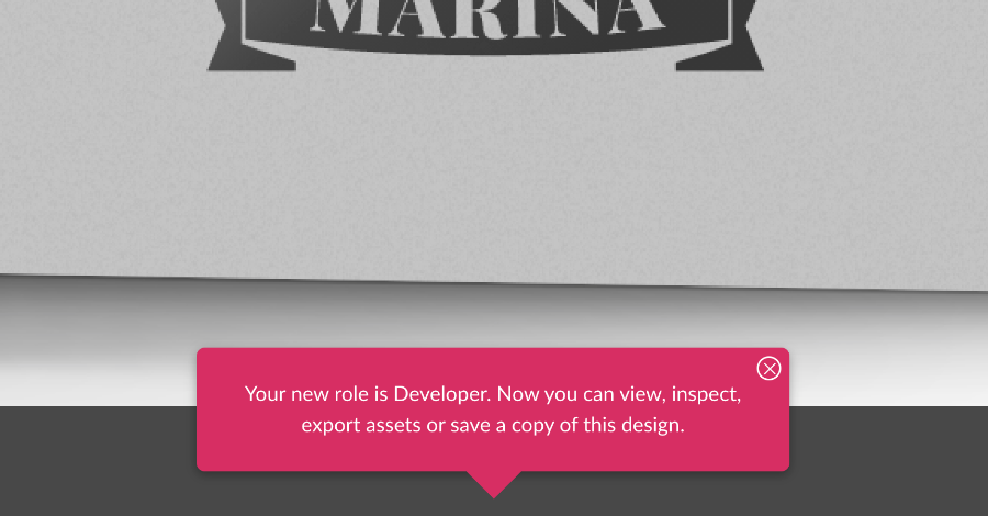 Collaborators with the Developer have no access to the Comments tab and therefore can’t access or leave annotations, but they see the complete interface instead of the simplified view. Developers can select elements on the canvas to inspect and modify them, can export from the file, and save/download a copy, although they can’t save modifications to the original shared file.
