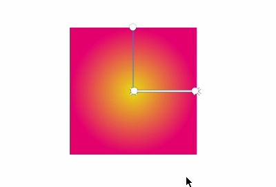 Alternatively, you can move the end handles of the gradient, and gradient color “stop points” interactively within the object. You can also rotate gradients interactively. Hold to constrain to 45 degree angles.