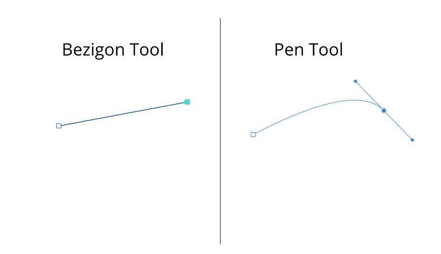 The difference between the Pen and Bezigon Tool is subtle but indeed sublime. Oppose to the Pen Tool you cannot introduce the direction handles by holding Left Mouse Button key and dragging your mouse.