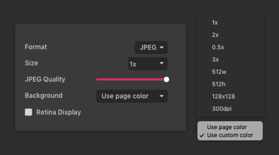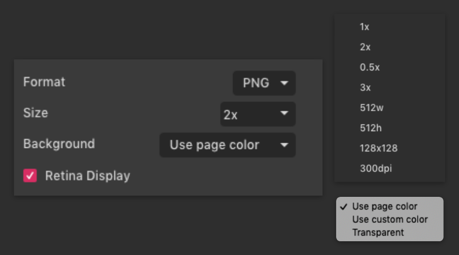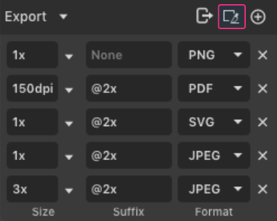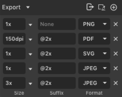 - Like any other asset, slices can be set to export as raster (PNG or JPEG) or vector (SVG and PDF)
