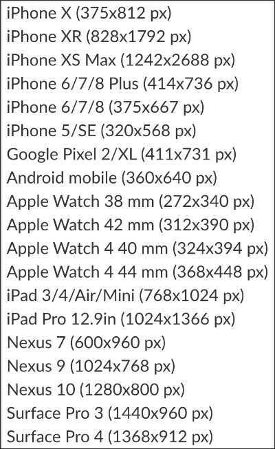 - Devices is a collection of templates for popular mobile devices. If you don’t know the iPhone X screen size, open the Devices drop-down and it there.