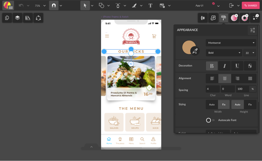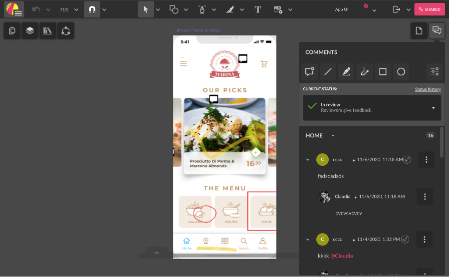 Same as in the normal interface, the Page Appearance and Comments panels are located on the right, and are shown when there’s nothing selected on the canvas.