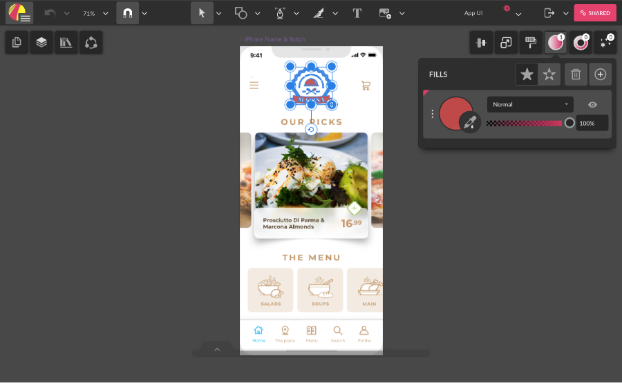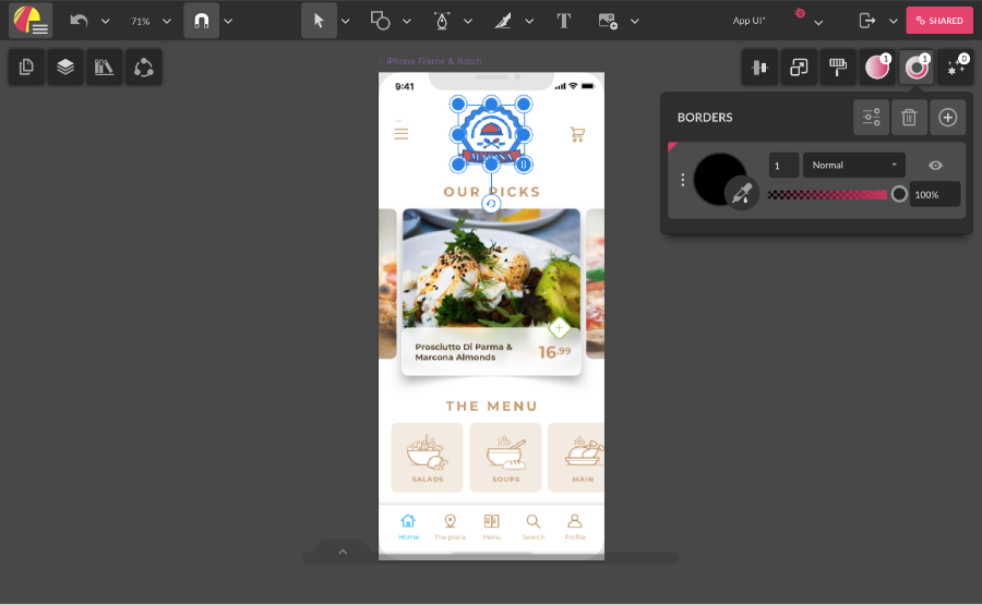 Similar to the normal interface, on Touch, to change the stacking order of a Layer, Page, Fill, Border or Effect, you need to drag and drop, but here you need to use a long-press to select before dragging. Select using long-press, then you’ll notice that the item you’re selecting will be highlighted in magenta.