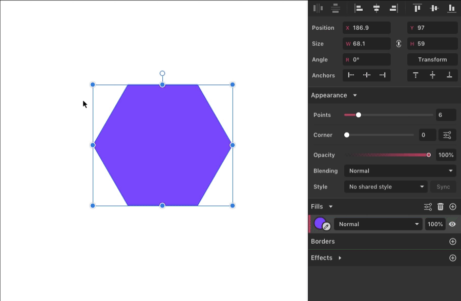 By default, Gravit Designer creates 6-sided polygons (hexagon). After you create a polygon, you can change the number of sides in the Inspector panel.