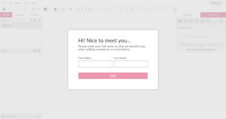 When the role is set for Reviewer or Approver, a dialog is presented so that the collaborator without an account can identify himself.