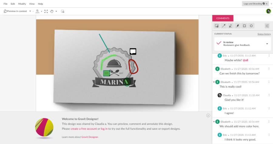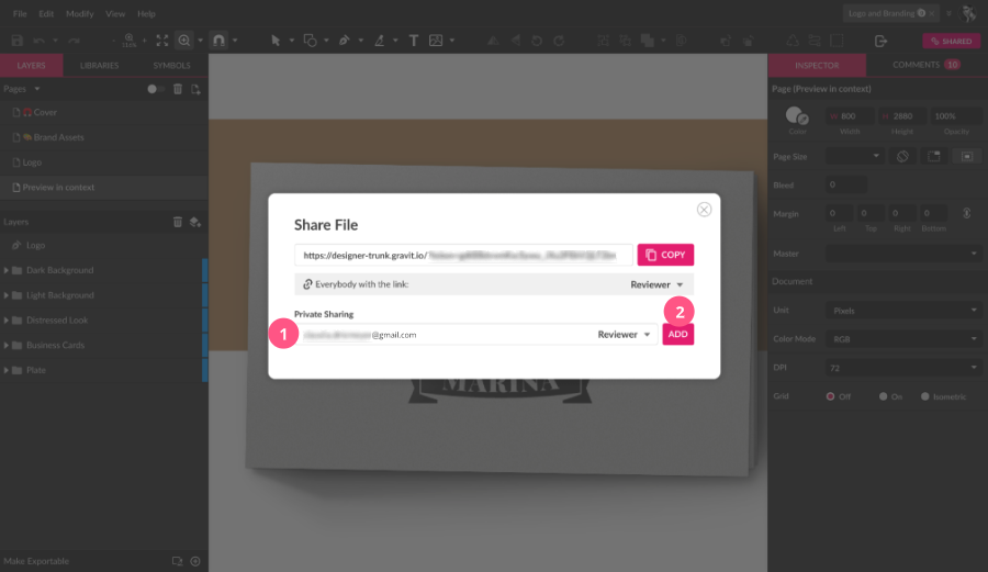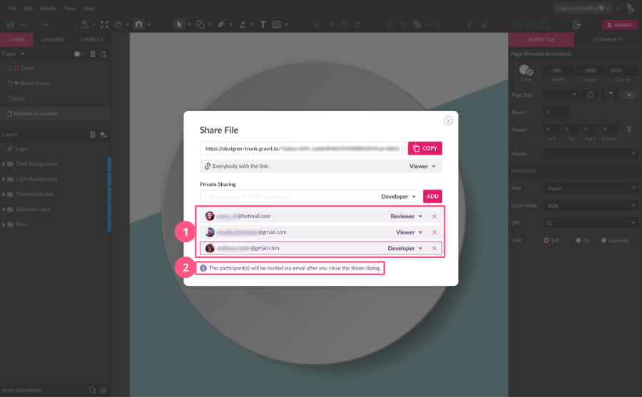 Sharing Cloud files and adding annotations is not reserved for Gravit Designer users only, as you can share a file link with anyone who’s not a user as well through Guest Access.