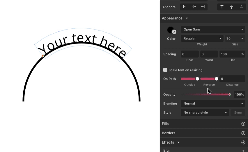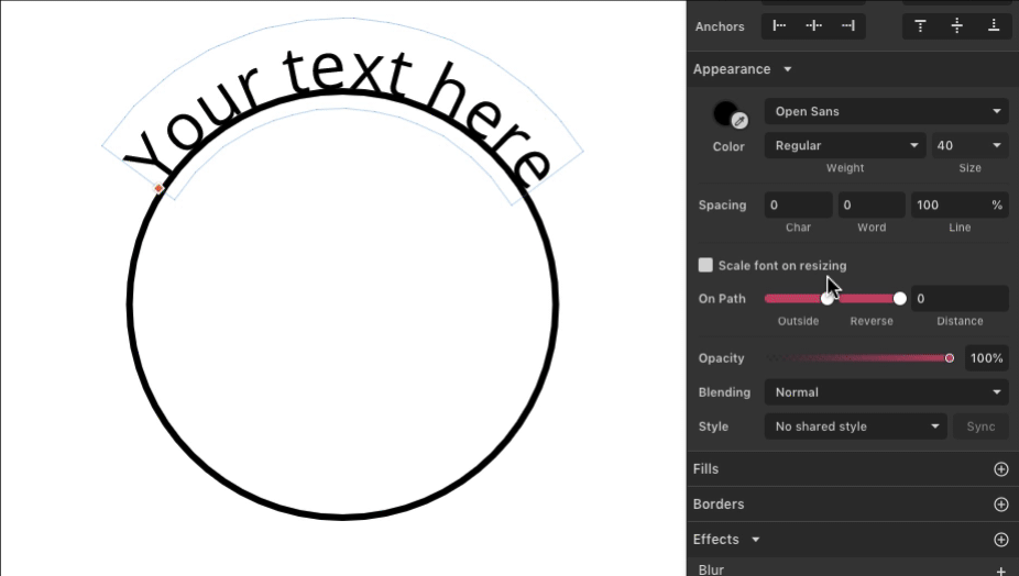 By default, text is positioned on the outside of the path. The Outside setting changes it to the inside.