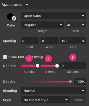 Text on a path is selected, it has unique properties on the Appearance panel:
