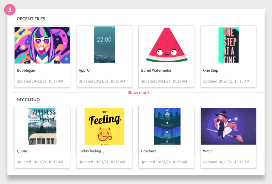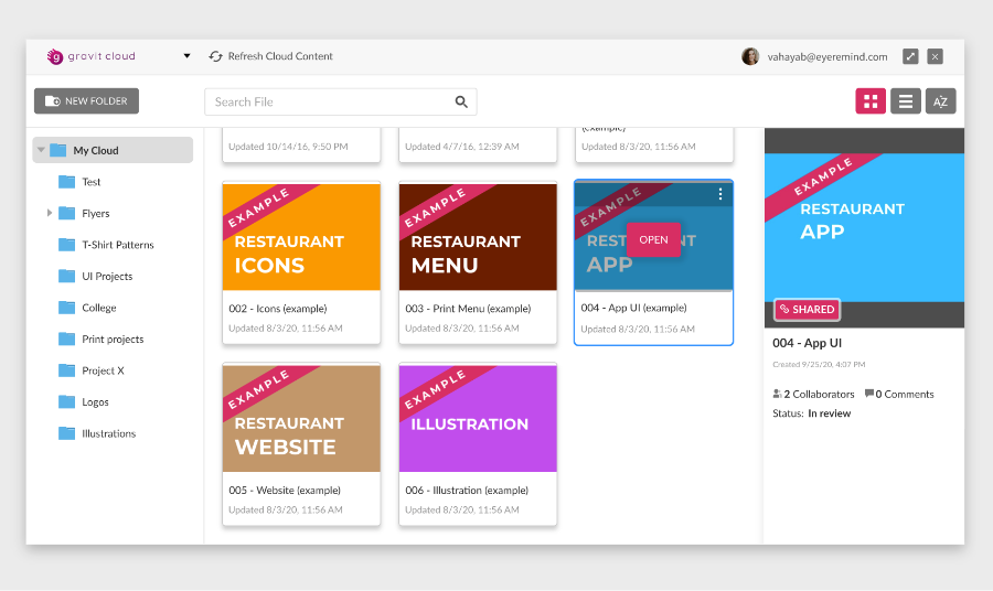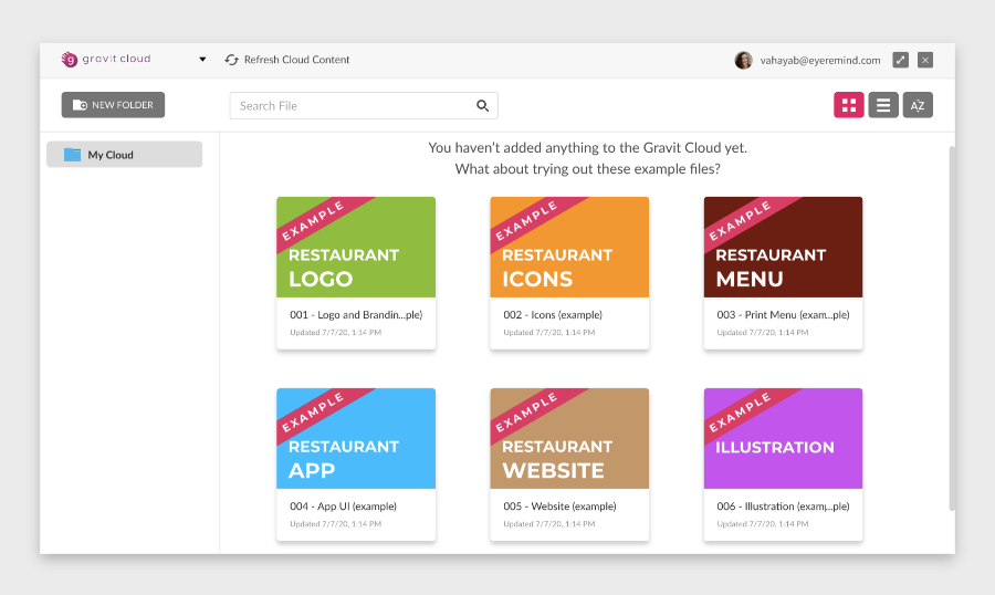 If you just created your account or still haven’t saved any files to your Cloud, it still won’t be empty. Gravit Designer offers a variety of example files that you can explore and to get familiar with the app.