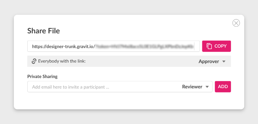 The same roles can be applied to Private Sharing(1). This link is sent via email. Using Private Sharing, you can restrict access. For example, you can leave the Public link with the Viewer role and provide this link to people, but leave only a few as Reviewers through the Private Sharing link.